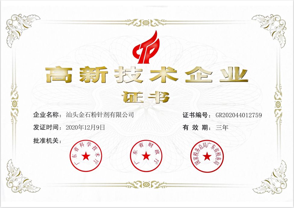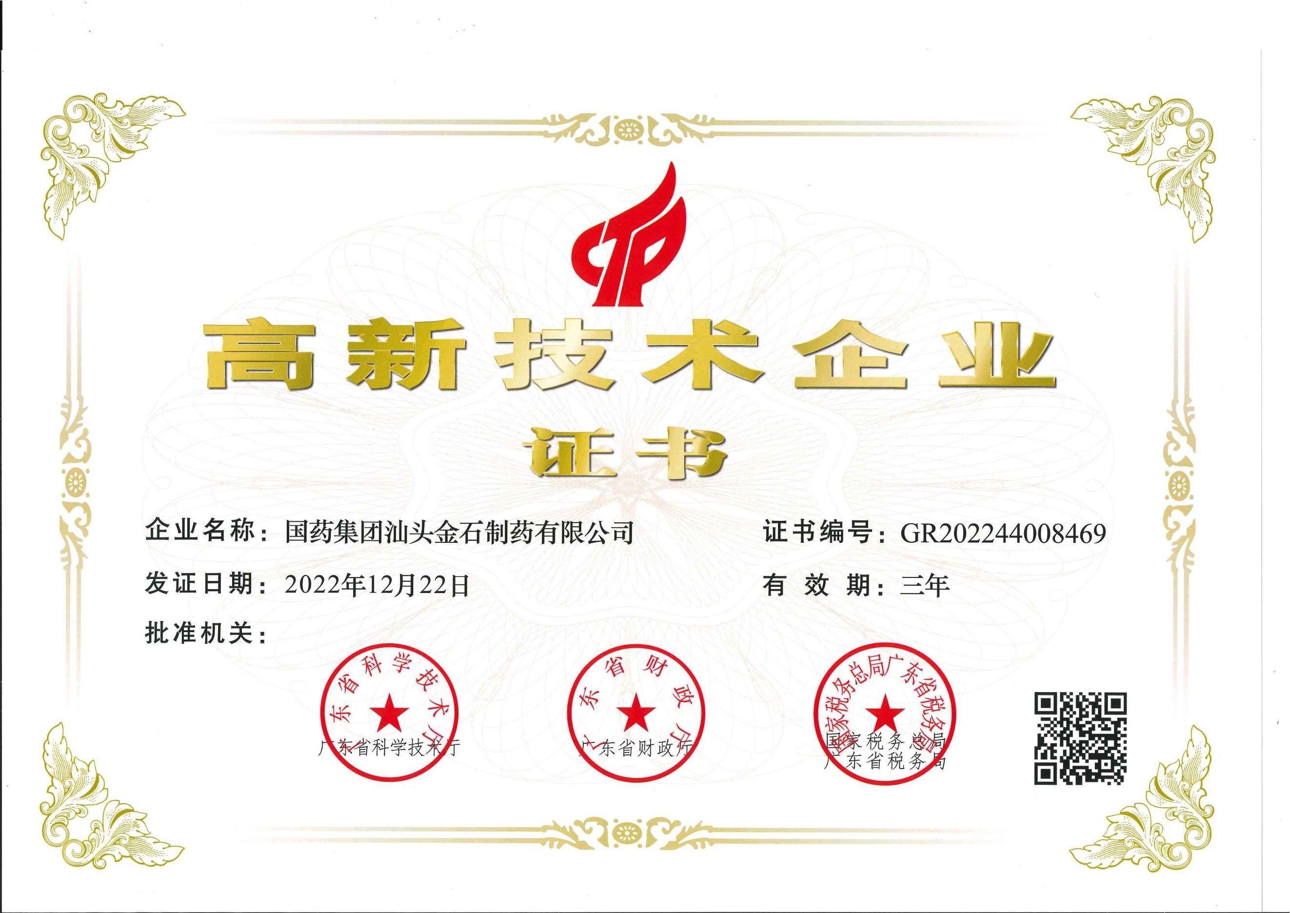 粉针公司高新企业证书