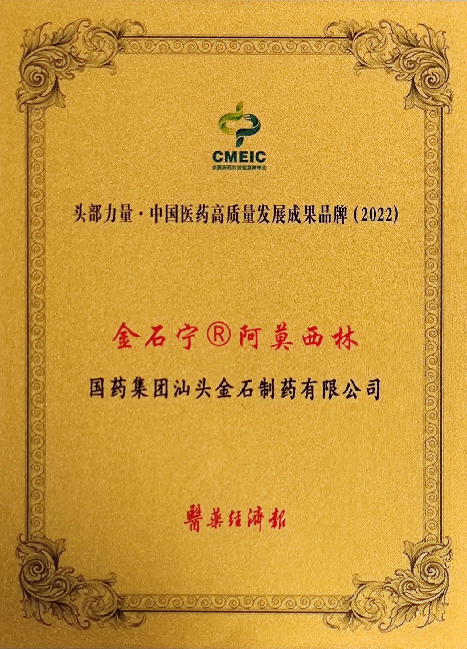 头部力量·中国医药高质量发展成果品牌2022阿莫西林(...
